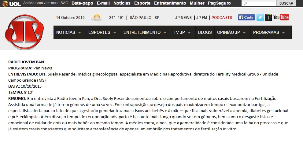 PROGRAMA PAN NEWS (RÁDIO JOVEM PAN) - Entrevista com Dra. Suely Resende