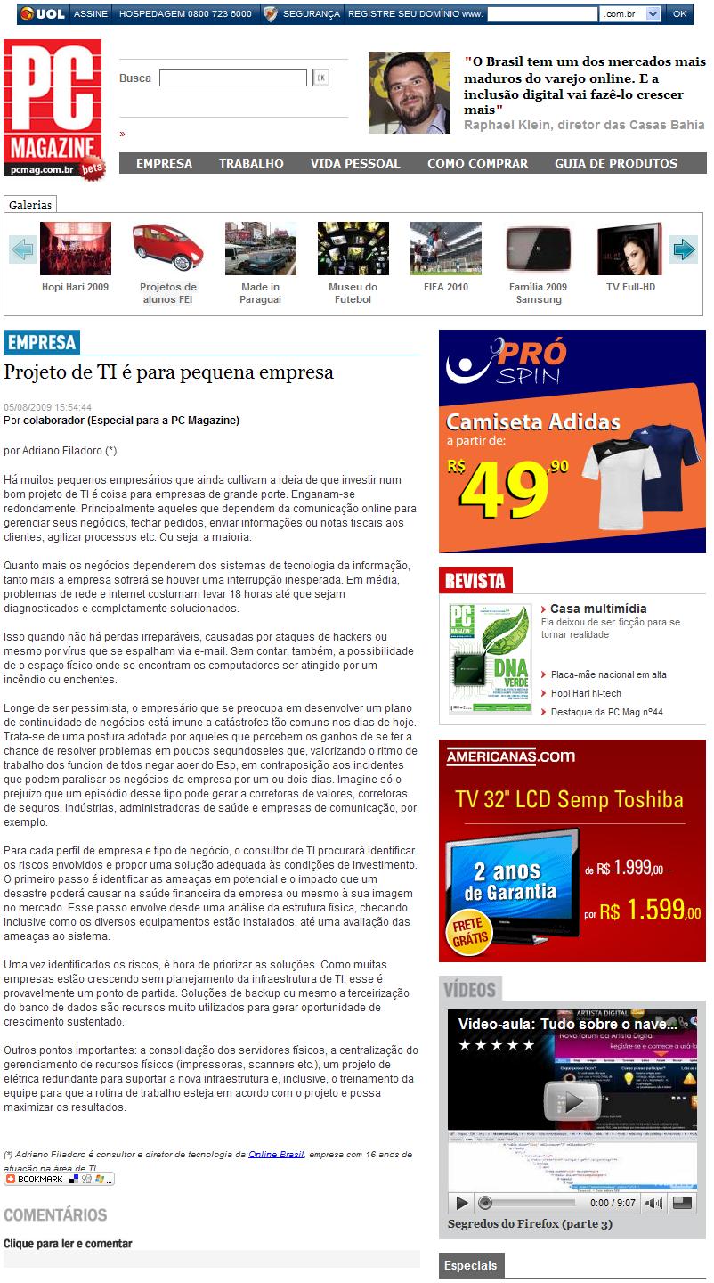 Portal UOL (Tecnologia) - Projeto de TI é para pequena empresa