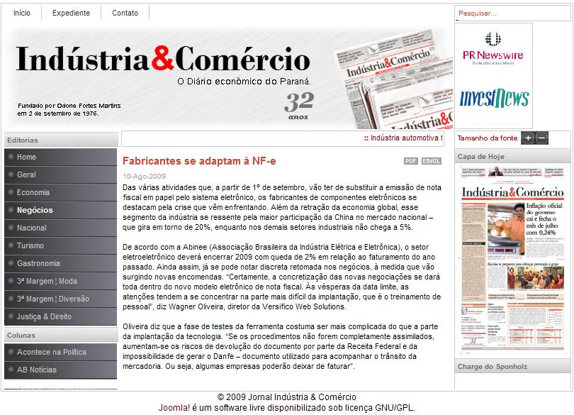 Jornal Indústria & Comércio (10 Ago) - Fabricantes se adaptam à NF-e