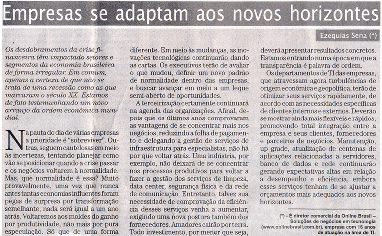 Jornal Empresas & Negócios (12 Ago) - Empresas se adaptam aos novos horizontes
