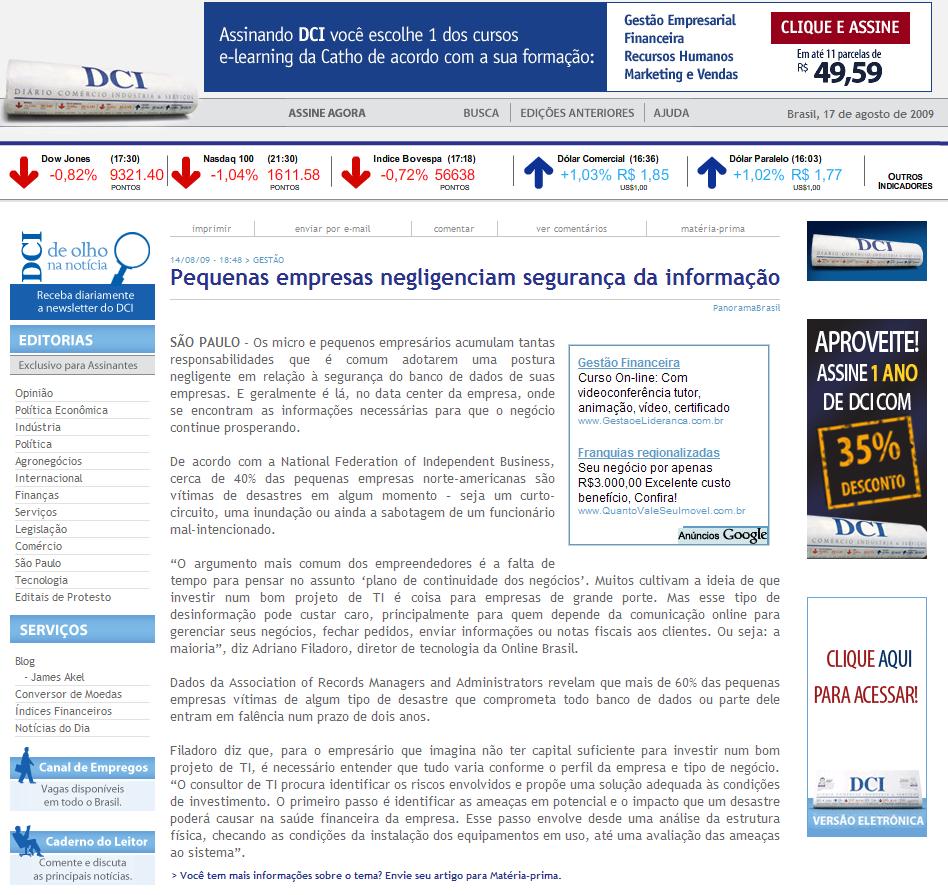 Jornal DCI digital - Pequenas empresas negligenciam segurança da informação