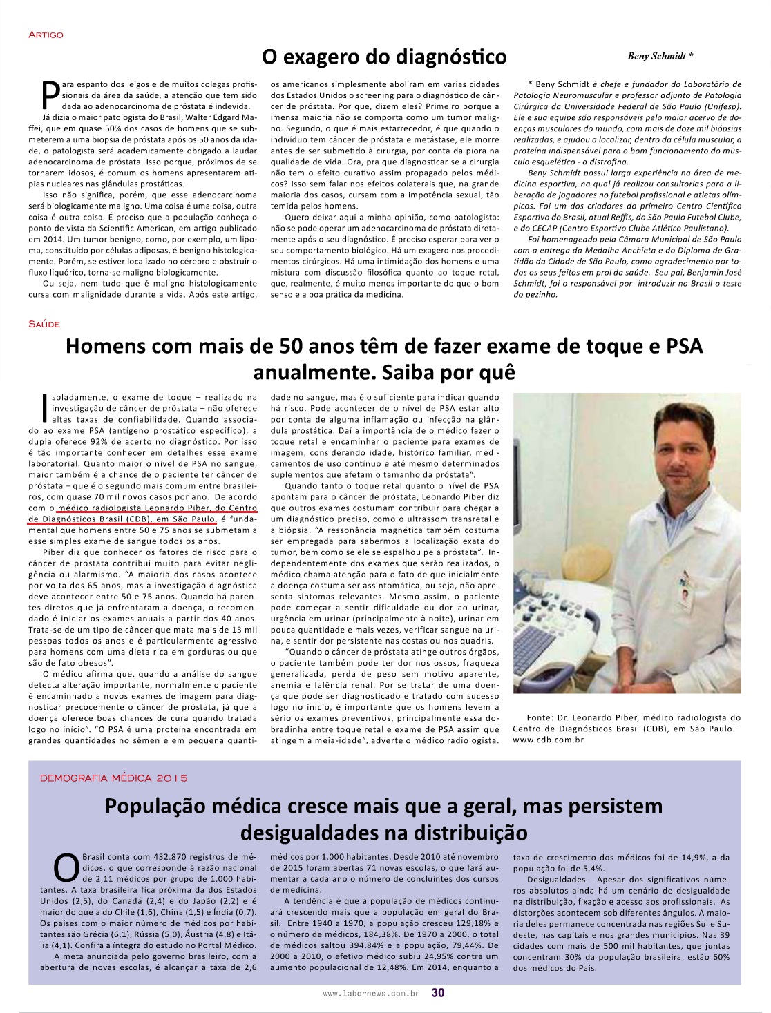 Clipping REVISTA LABOR (IMPRESSO) - Homens com mais de 50 anos têm de fazer exame de toque e PSA anualmente. Saiba por quê 10/12/2015