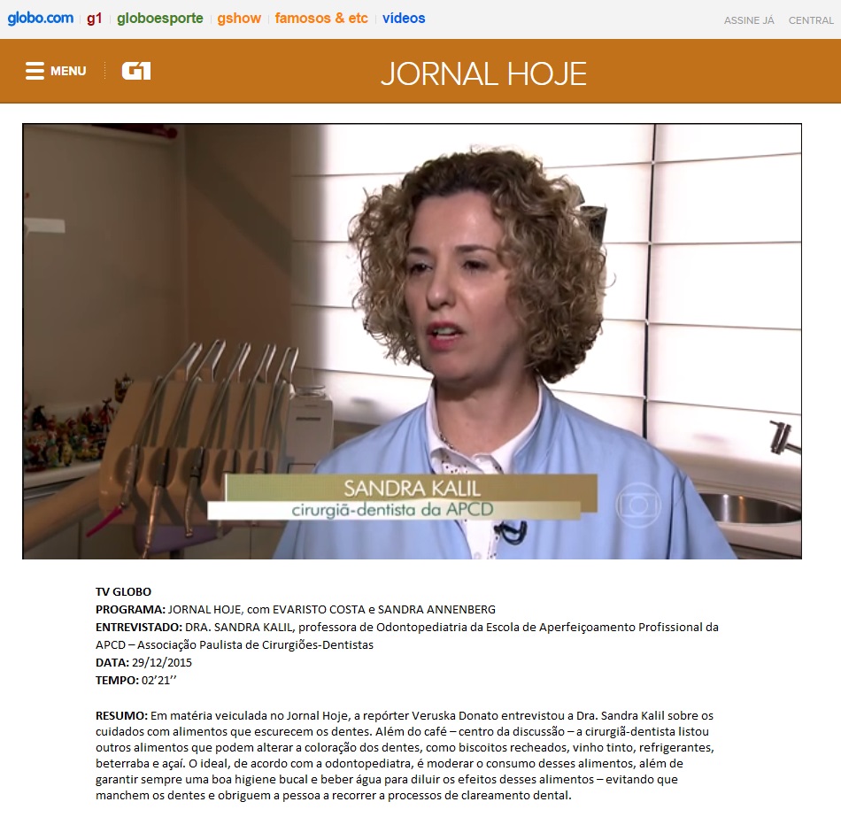 JORNAL HOJE (TV GLOBO) - Entrevista com Dra. Sandra Kalil