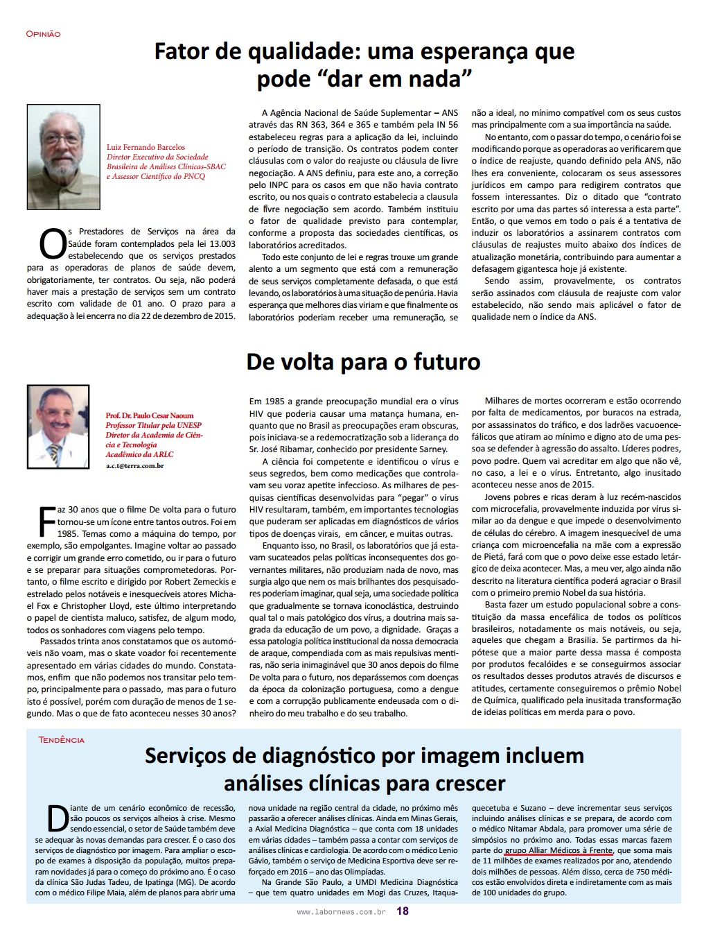 Clipping REVISTA LABOR NEWS (IMPRESSO) - Serviços de diagnóstico por imagem incluem análises clínicas para crescer 11/01/2016
