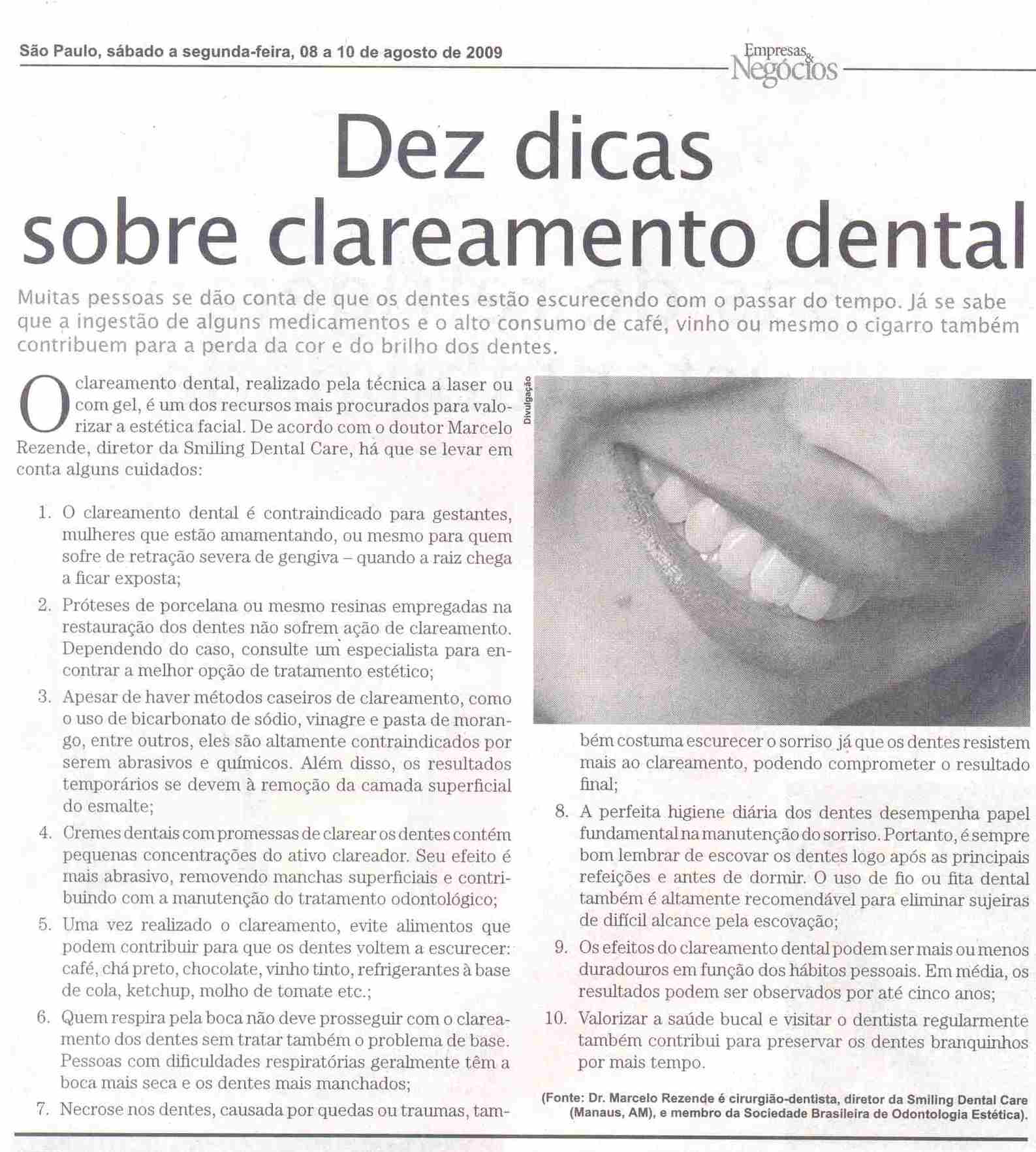 Jornal Empresas & Negócios (10 Ago) - Dez dicas sobre clareamento dental