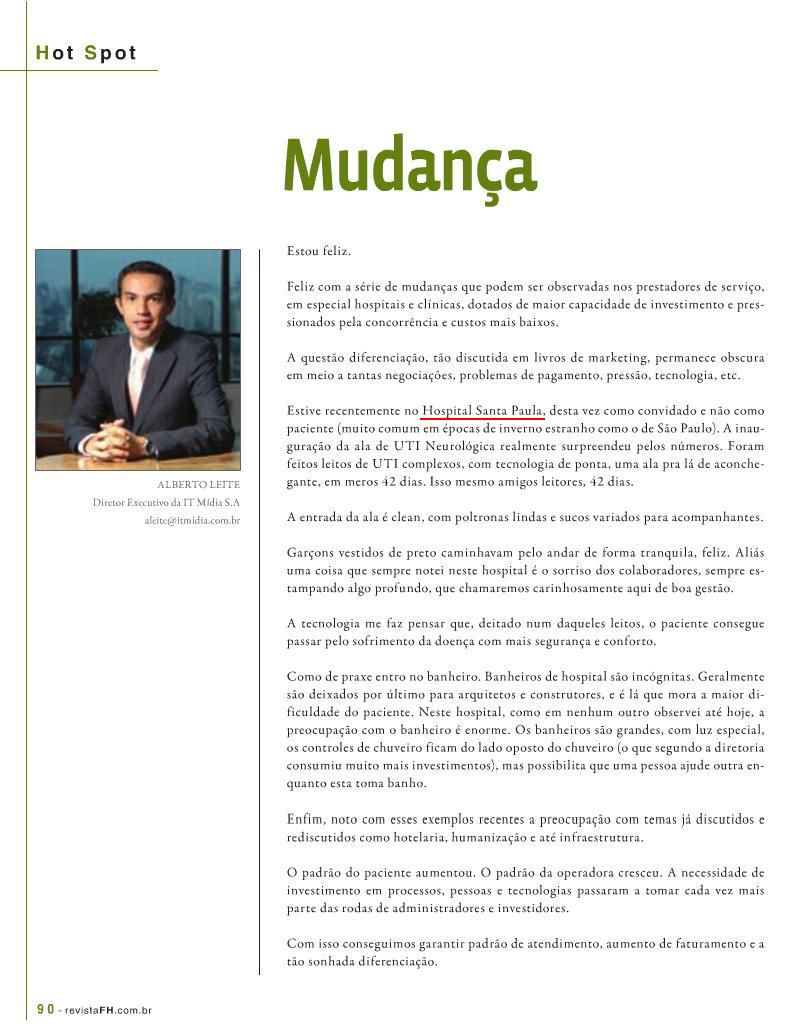 Revista Fornecedores Hospitalares (Jul/09) - Mudança