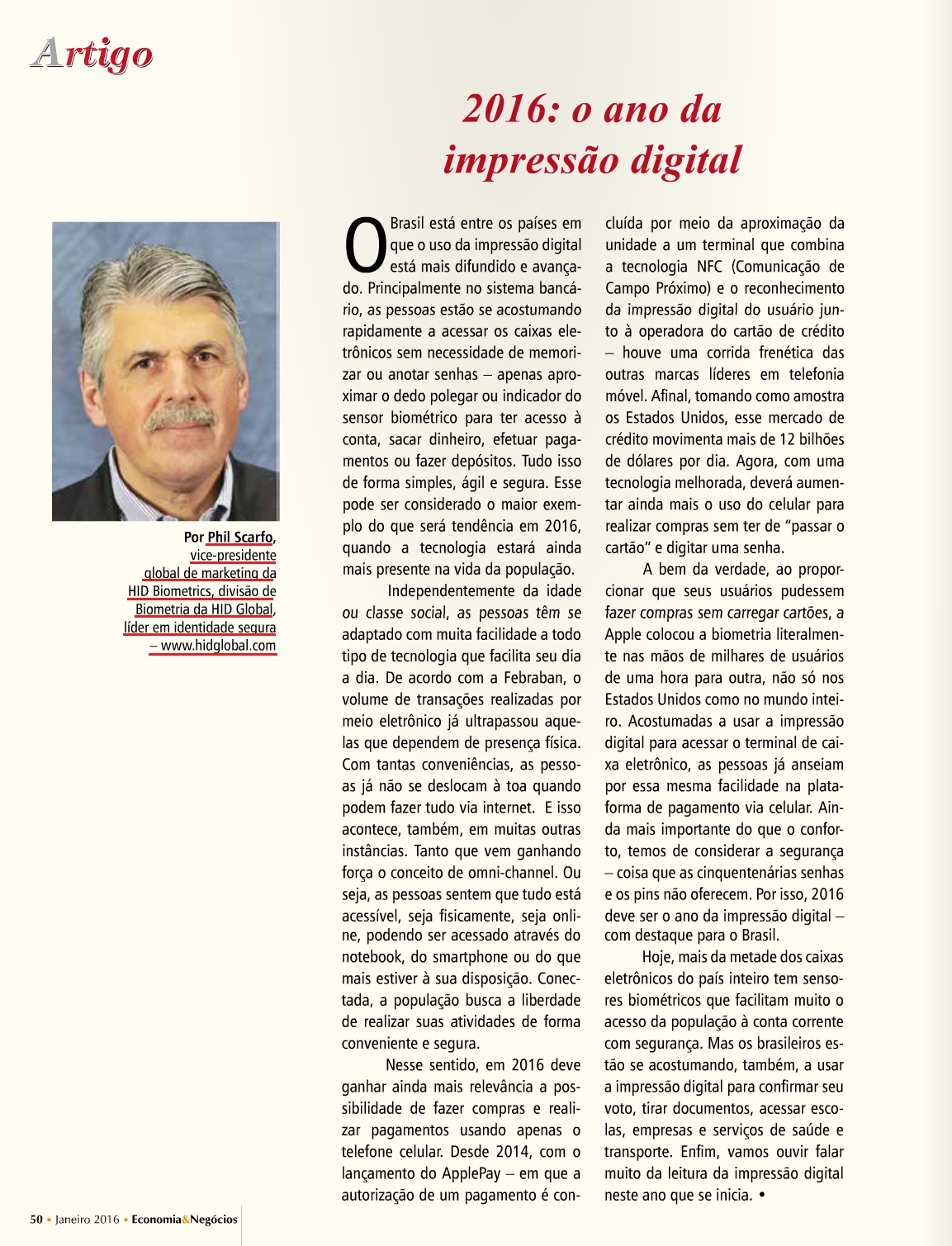 Clipping REVISTA PORTUÁRIA ECONOMIA & NEGÓCIOS (IMPRESSO) - 2016: o ano da impressão digital 04/02/2016