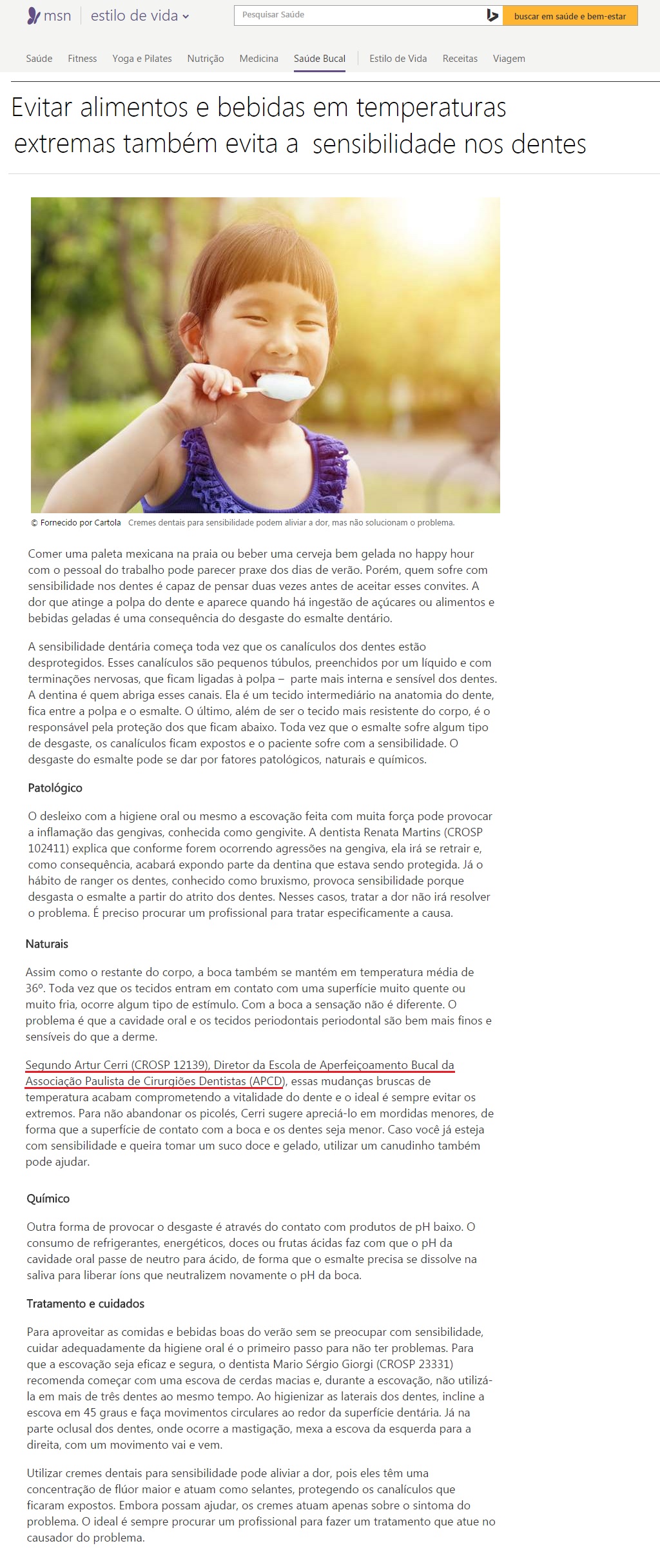 Clipping PORTAL MSN - Evitar alimentos e bebidas em temperaturas extremas também evita a sensibilidade nos dentes 22/02/2016