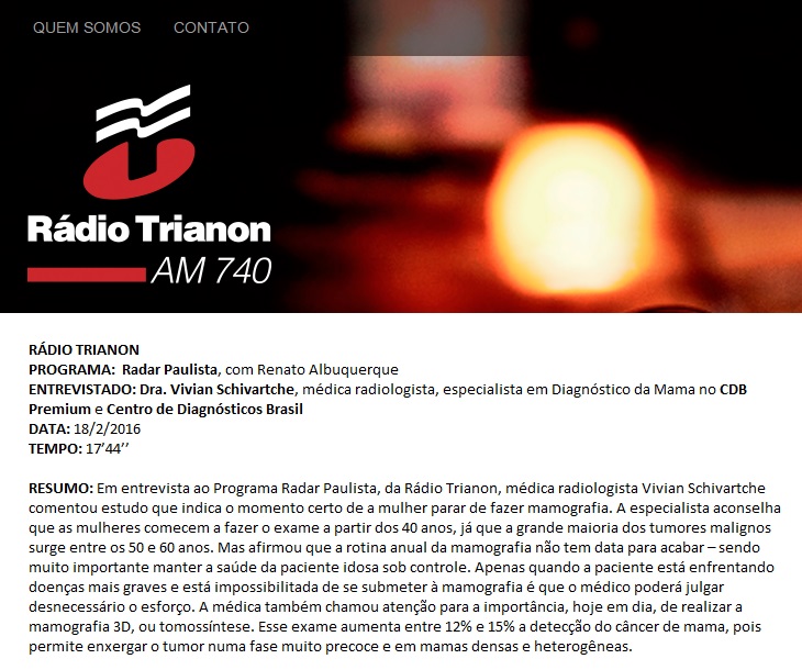 RÁDIO TRIANON - Entrevista com Dra. Vivian Schivartche
