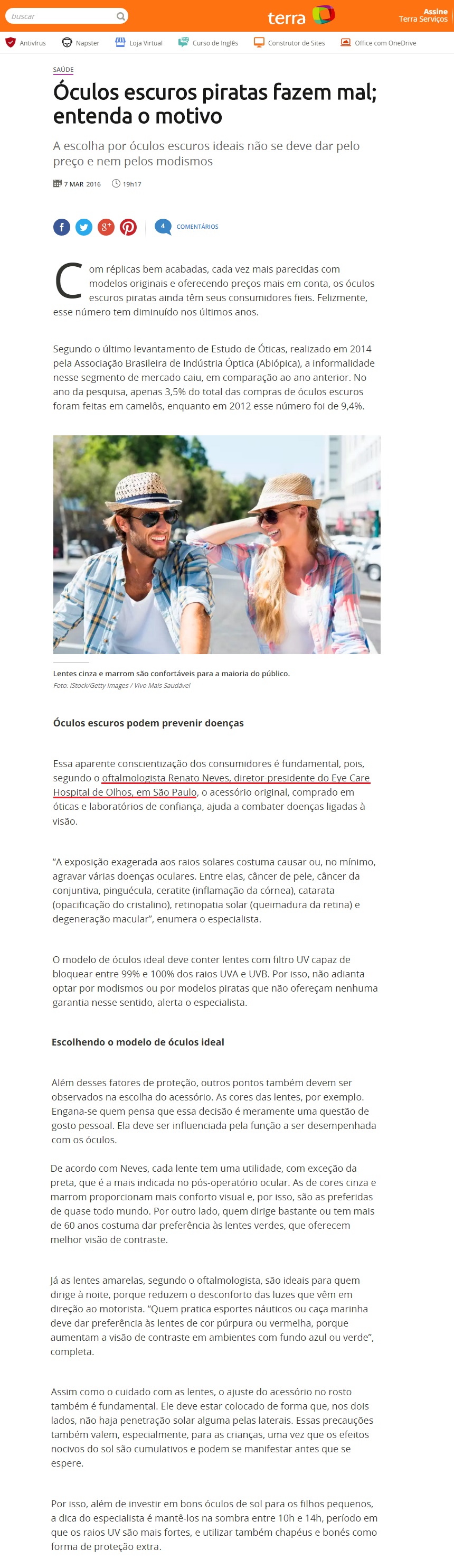 PORTAL TERRA - Óculos escuros piratas fazem mal; entenda o motivo