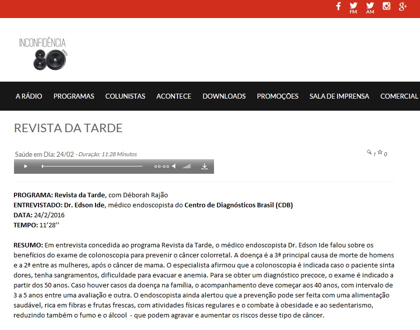 RÁDIO INCONFIDÊNCIA (MG) - Entrevista com Dr. Edson Ide