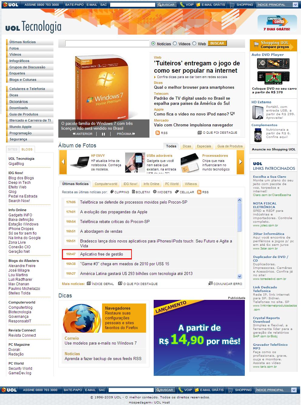 Portal UOL (Tecnologia) - Aplicato free de gestão