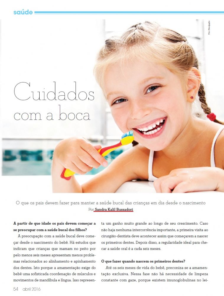 Clipping REVISTA DO TATUAPÉ (IMPRESSO) - O que os pais devem fazer para manter a saúde bucal das crianças em dia desde do nascimento 18/04/2016