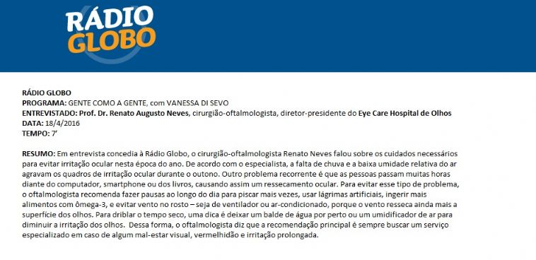 RÁDIO GLOBO - Entrevista com Dr. Renato Neves