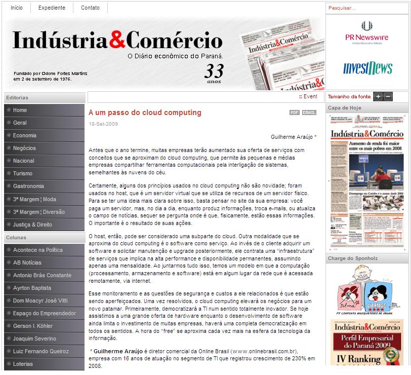 Jornal Indústria & Comércio (18 Set) - A um passo do cloud computing