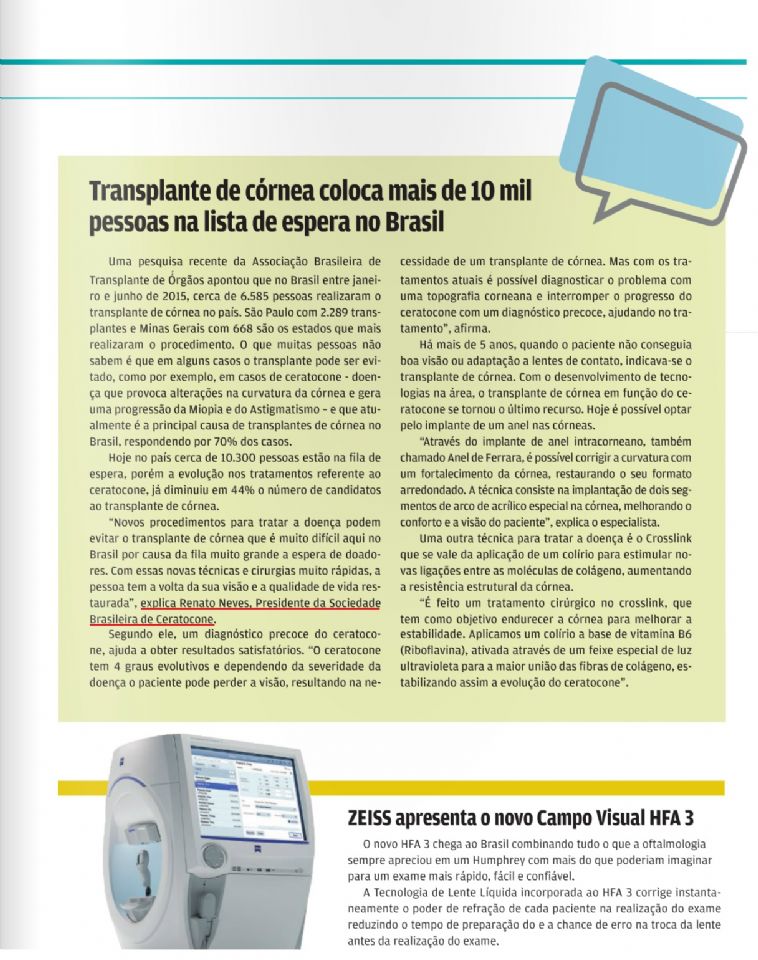 Clipping REVISTA UNIVERSO VISUAL (IMPRESSO) - Transplante de córnea coloca mais de 10 mil pessoas na lista de espera 27/04/2016