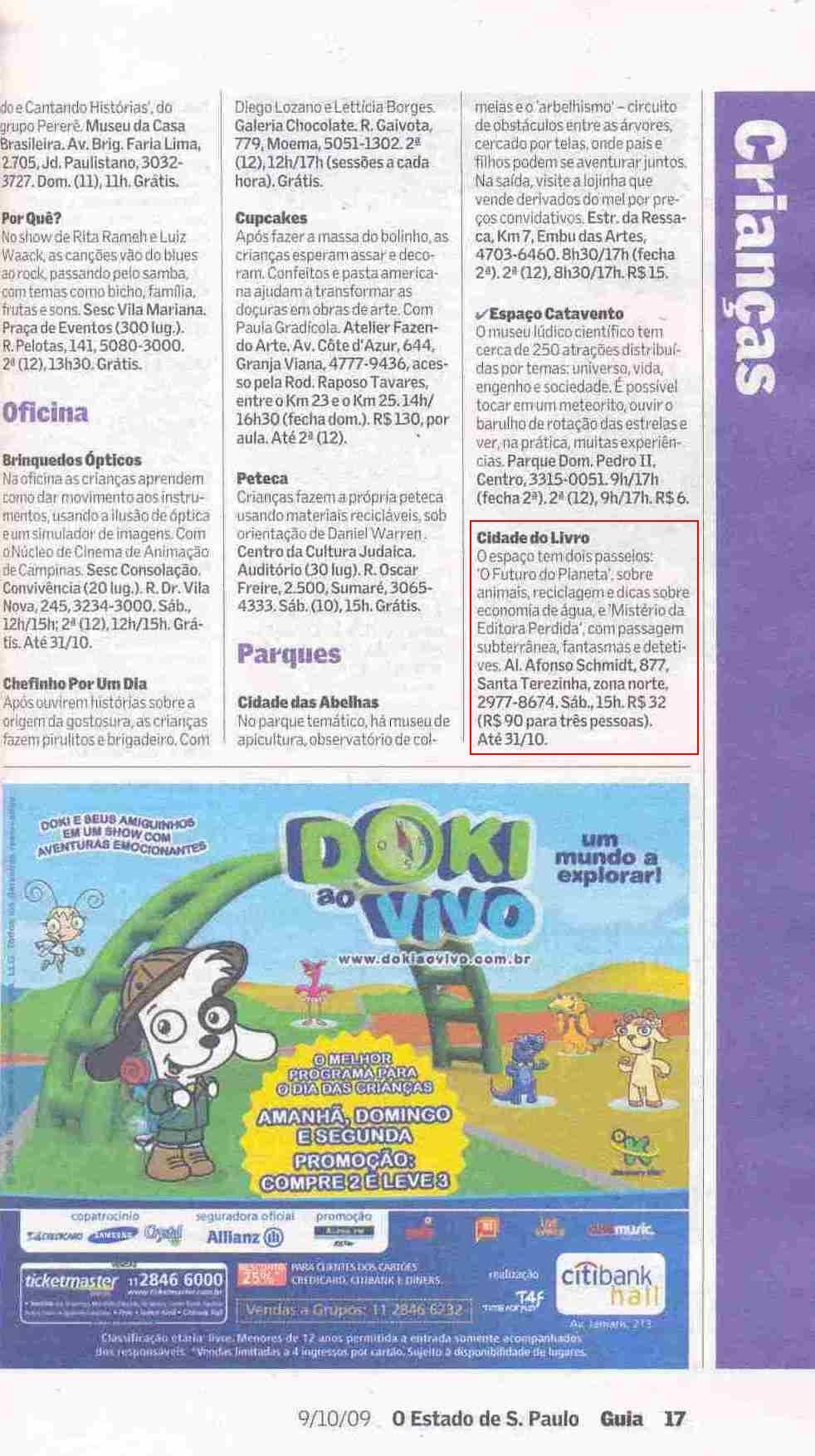 O Estado de S.Paulo - Guia do Estado (9 Out) - Cidade do Livro