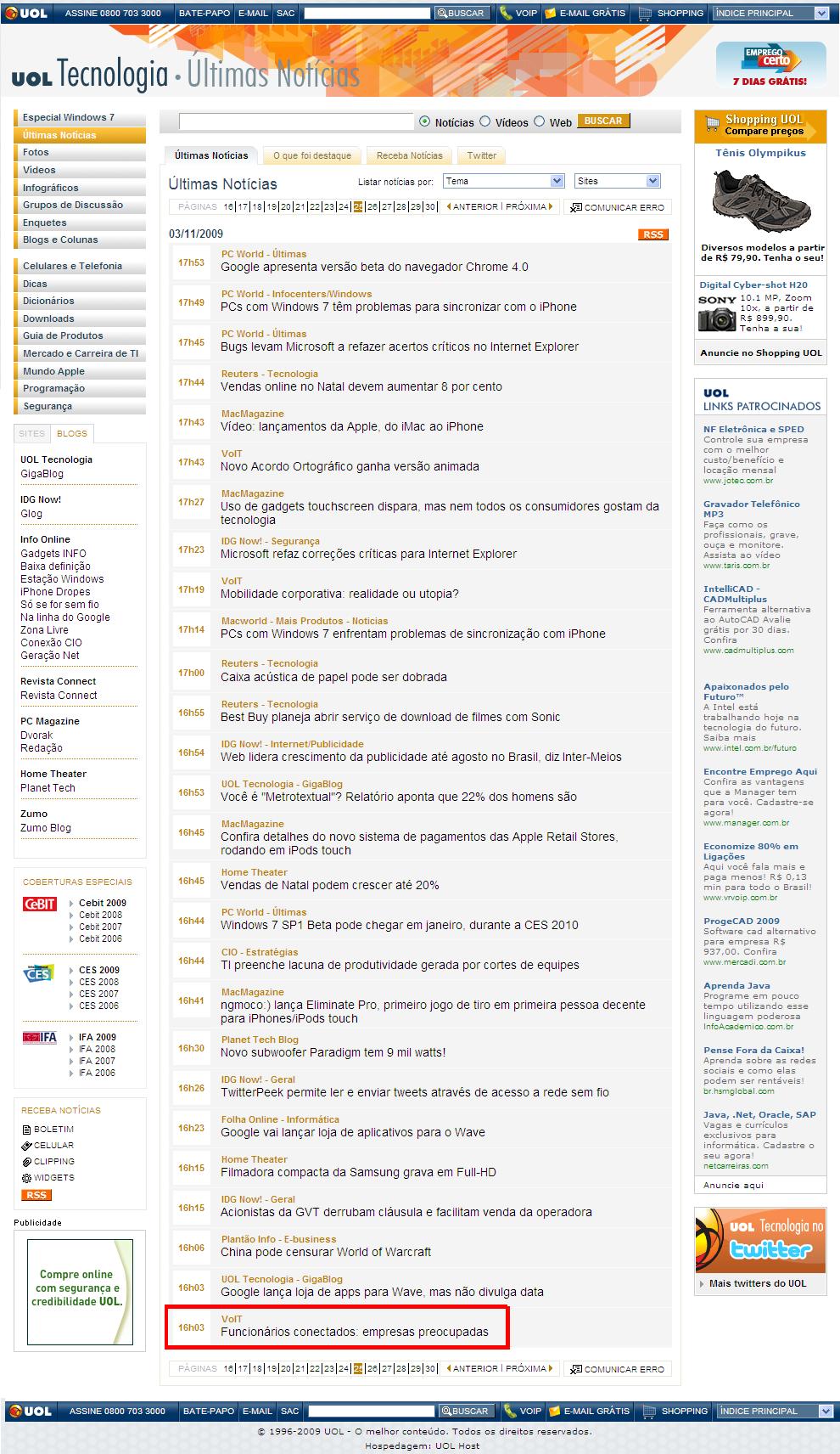 Portal UOL (Tecnologia) - Funcionários conectados: empresas preocupadas