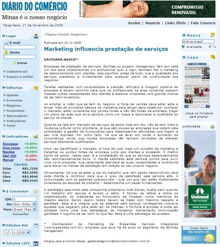 Diário do Comércio/MG (10 Nov) - Marketing influencia prestação de serviços