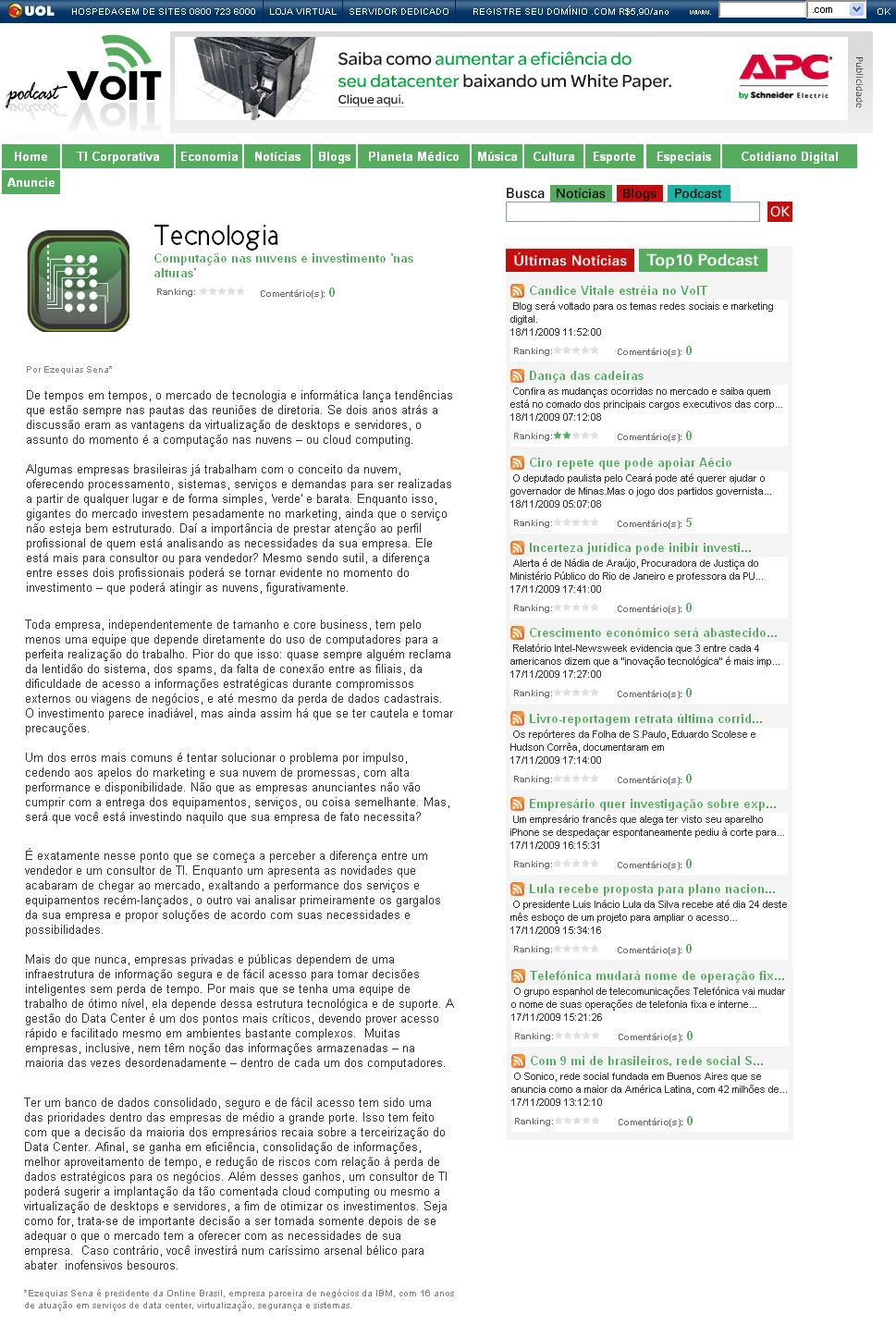 Portal UOL (Tecnologia) - Computação nas nuvens e investimento nas alturas
