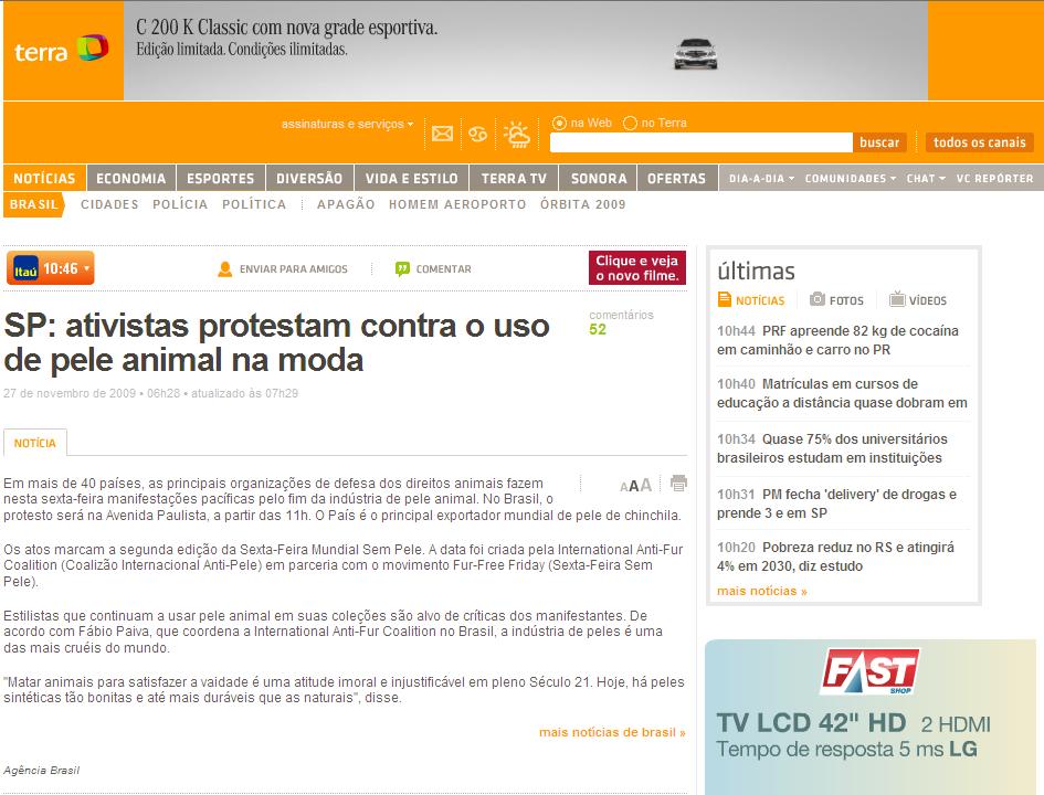 Portal Terra - SP: ativistas protestam contra o uso de pele animal na moda