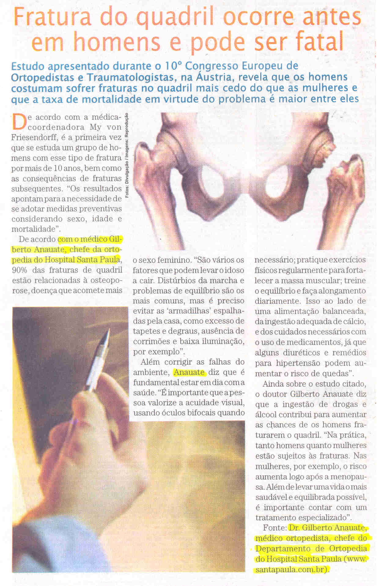 Clipping Jornal Empresas & Negócios (25 Nov) - Fratura do quadril ocorre antes em homem e pode ser fatal 25/11/2009