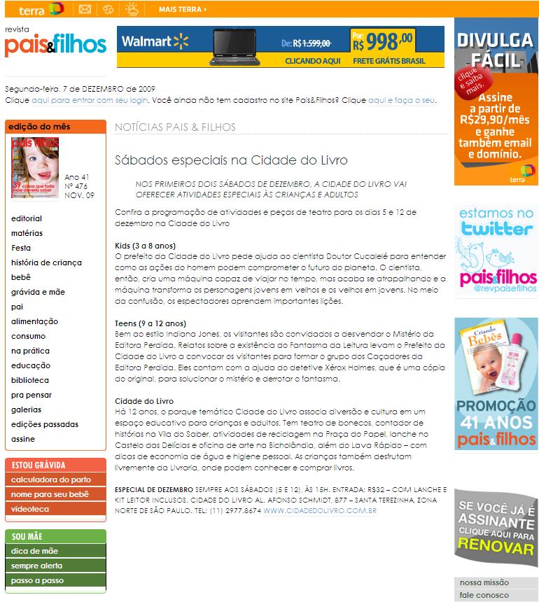 REVISTA PAIS & FILHOS (DIGITAL) - Sábados especiais na Cidade do Livro