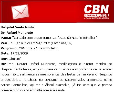 RÁDIO CBN FM 99,1 MHz (CAMPINAS/SP) - Hospital Santa Paula / Dr. Rafael Munerato