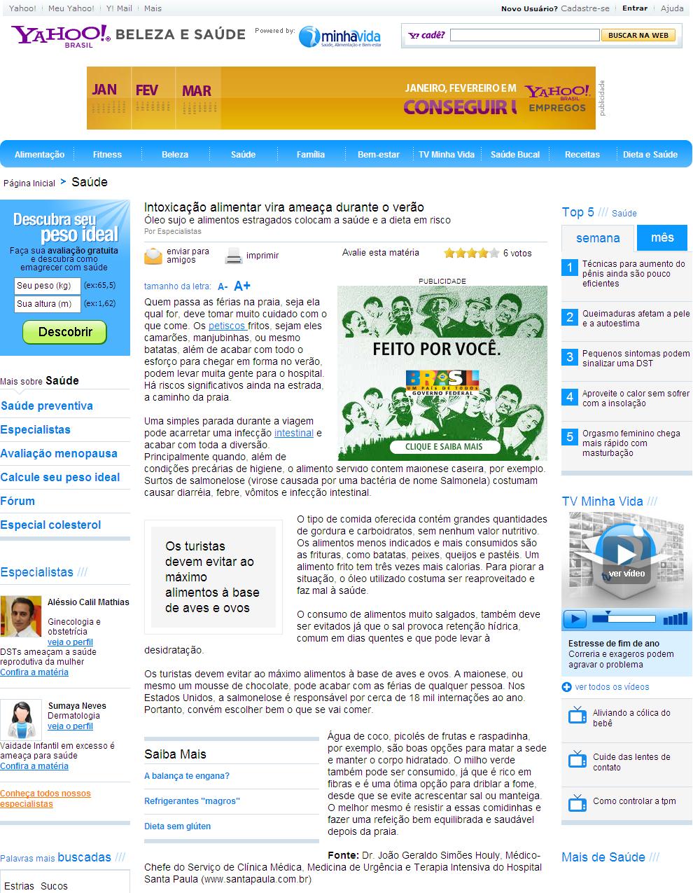 Clipping PORTAL YAHOO (BELEZA & SAÚDE) - Intoxicação alimentar vira ameaça durante o verão 08/01/2010