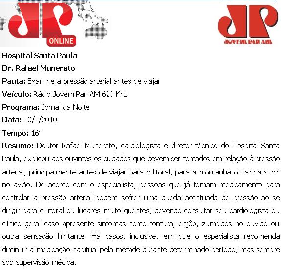 RÁDIO JOVEM PAN AM 620 KHz - Hospital Santa Paula/Dr. Rafael Munerato