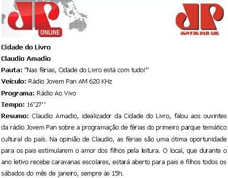 RÁDIO JOVEM PAN AM 620 KHz - Cidade do Livro / Claudio Amadio