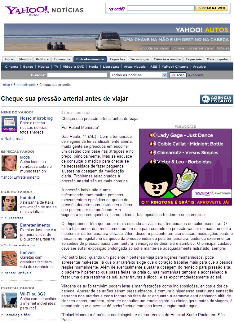PORTAL YAHOO - Cheque sua pressão arterial antes de viajar