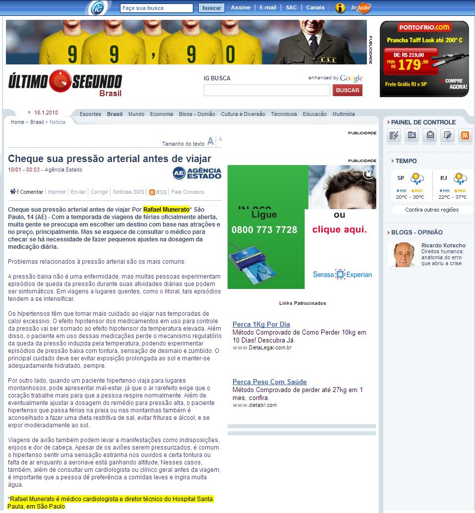 PORTAL IG (ÚLTIMO SEGUNDO) - Cheque sua pressão arterial antes de viajar