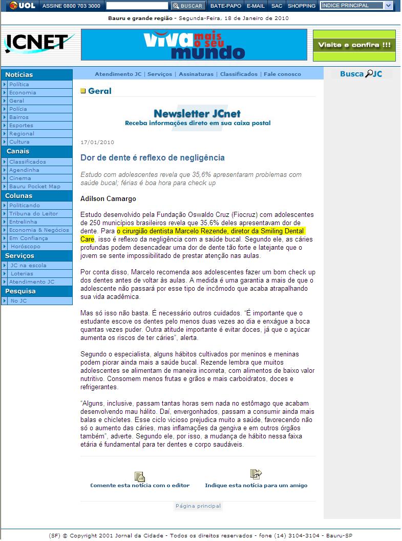 JORNAL DA CIDADE (BAURU/SP) (17 Jan) - Dor de dente é reflexo de negligência