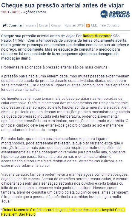 AGÊNCIA ESTADO (AE) - Cheque sua pressão arterial antes de viajar