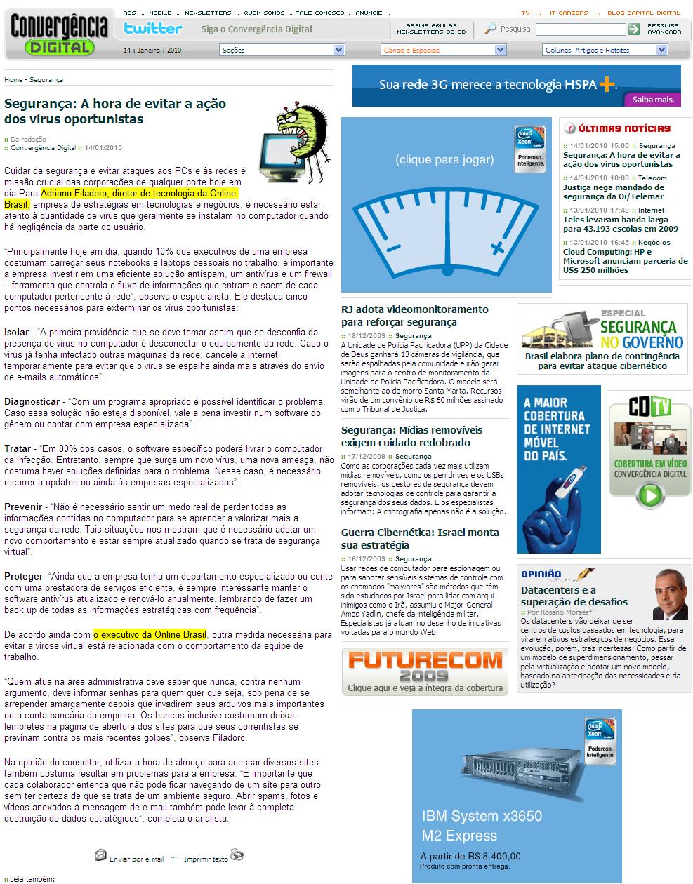 Clipping PORTAL CONVERGÊNCIA DIGITAL - Segurança: a hora de evitar a ação dos vírus oportunistas 20/01/2010