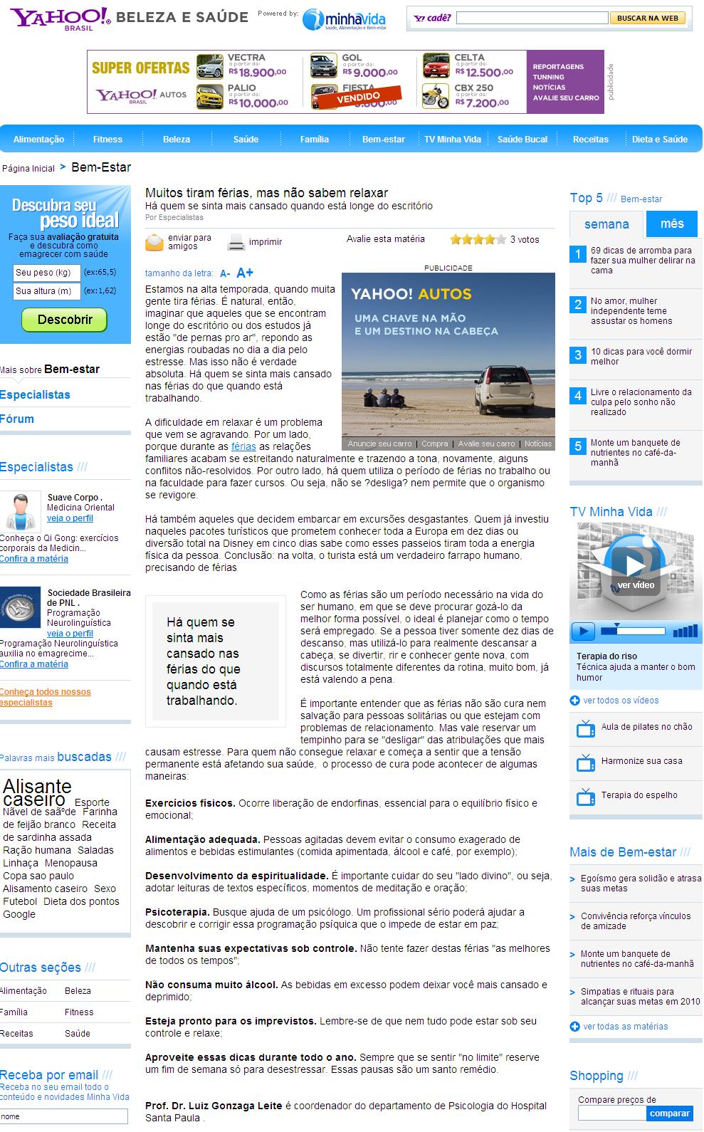 PORTAL YAHOO - Muitos tiram férias, mas não sabem relaxar