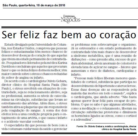 JORNAL EMPRESAS & NEGÓCIOS (10 Mar) - Ser feliz faz bem ao coração
