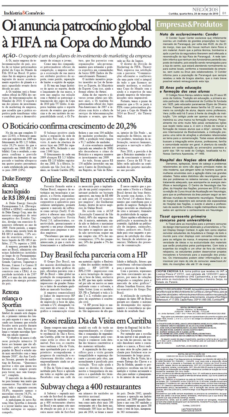 JORNAL INDÚSTRIA & COMÉRCIO (24 MAR) - Online Brasil tem parceria com Navita