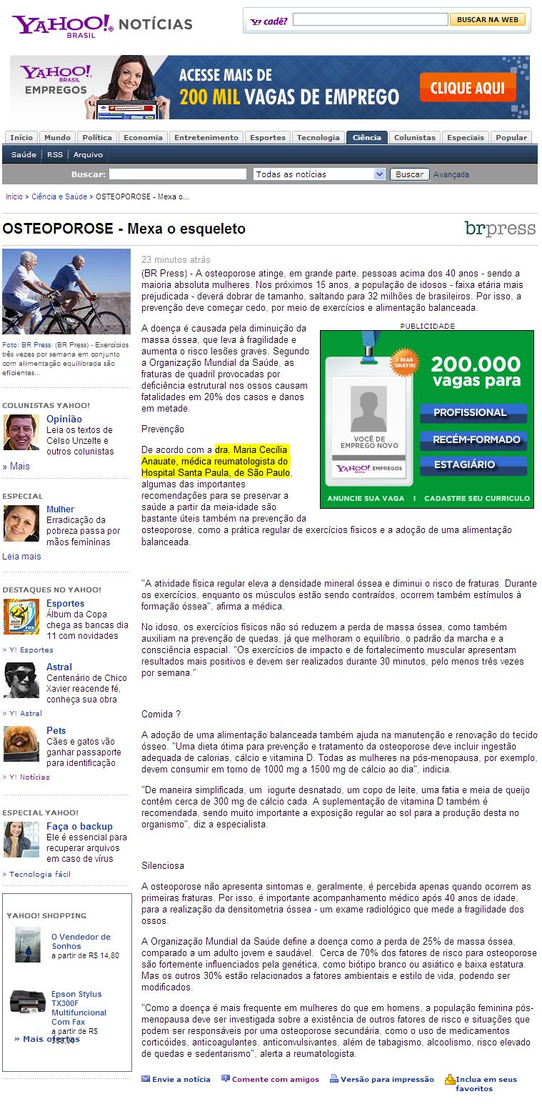 PORTAL YAHOO - Osteoporose: mexa o esqueleto