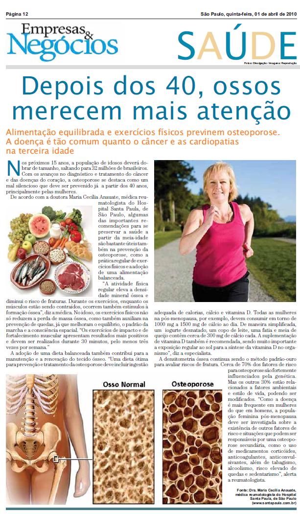 JORNAL EMPRESAS & NEGÓCIOS (1° ABR) - Depois dos 40, ossos merecem mais atenção