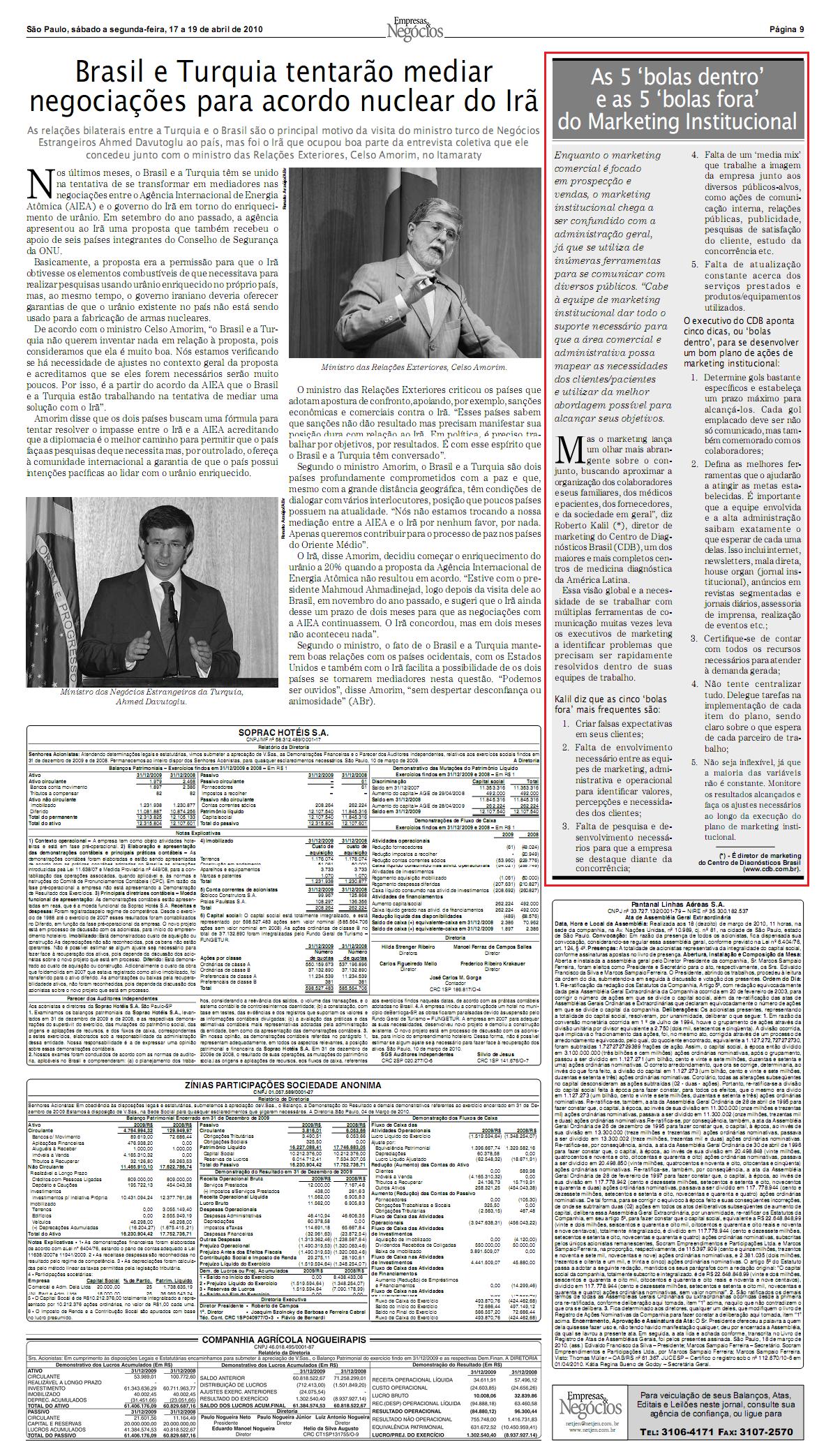 Clipping JORNAL EMPRESAS & NEGÓCIOS (IMPRESSO E DIGITAL): As 5 bolas dentro e as 5 bolas fora do MKT Institucional 19/04/2010