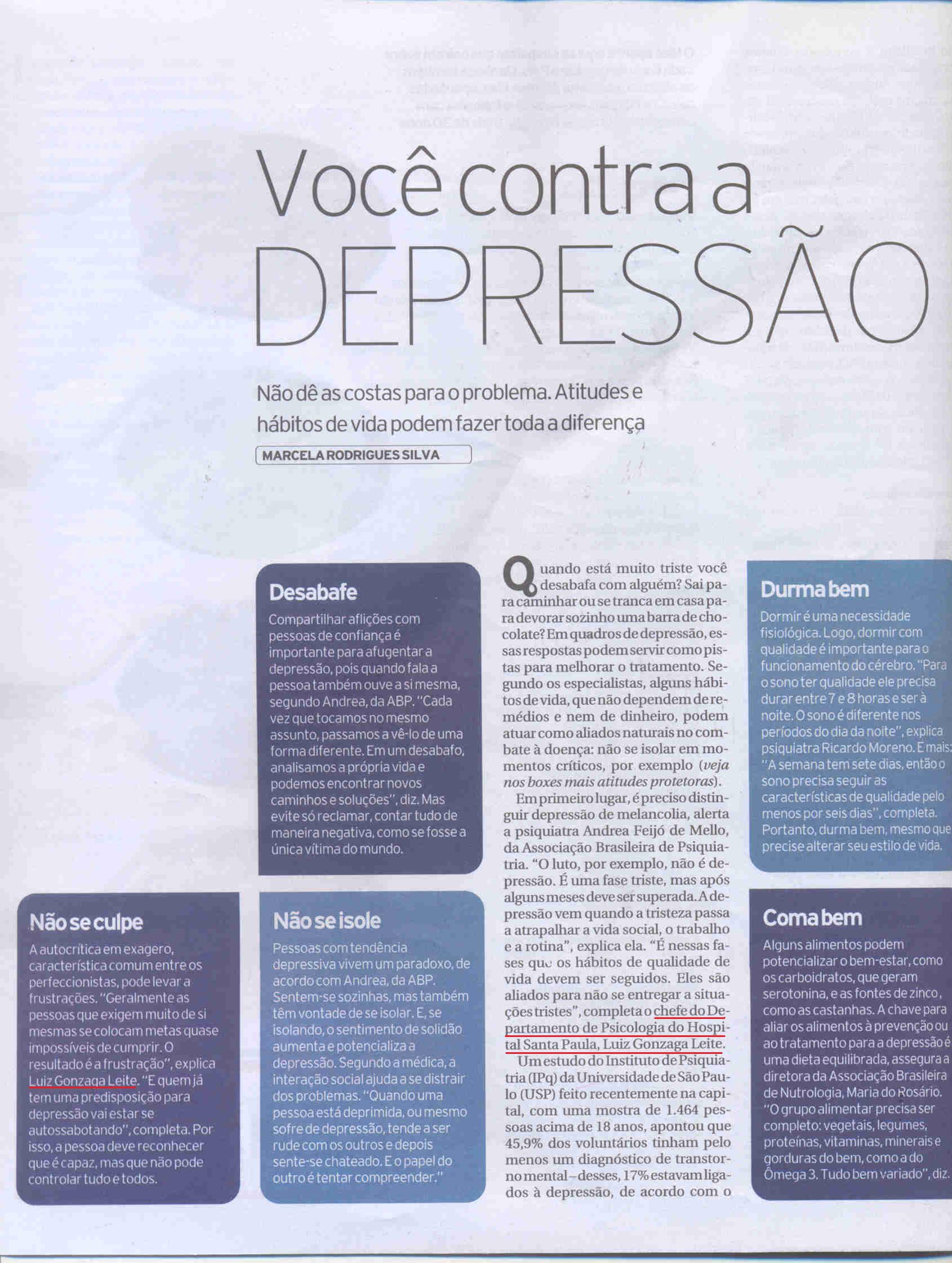 JORNAL DA TARDE/ REVISTA JT - Você contra a depressão
