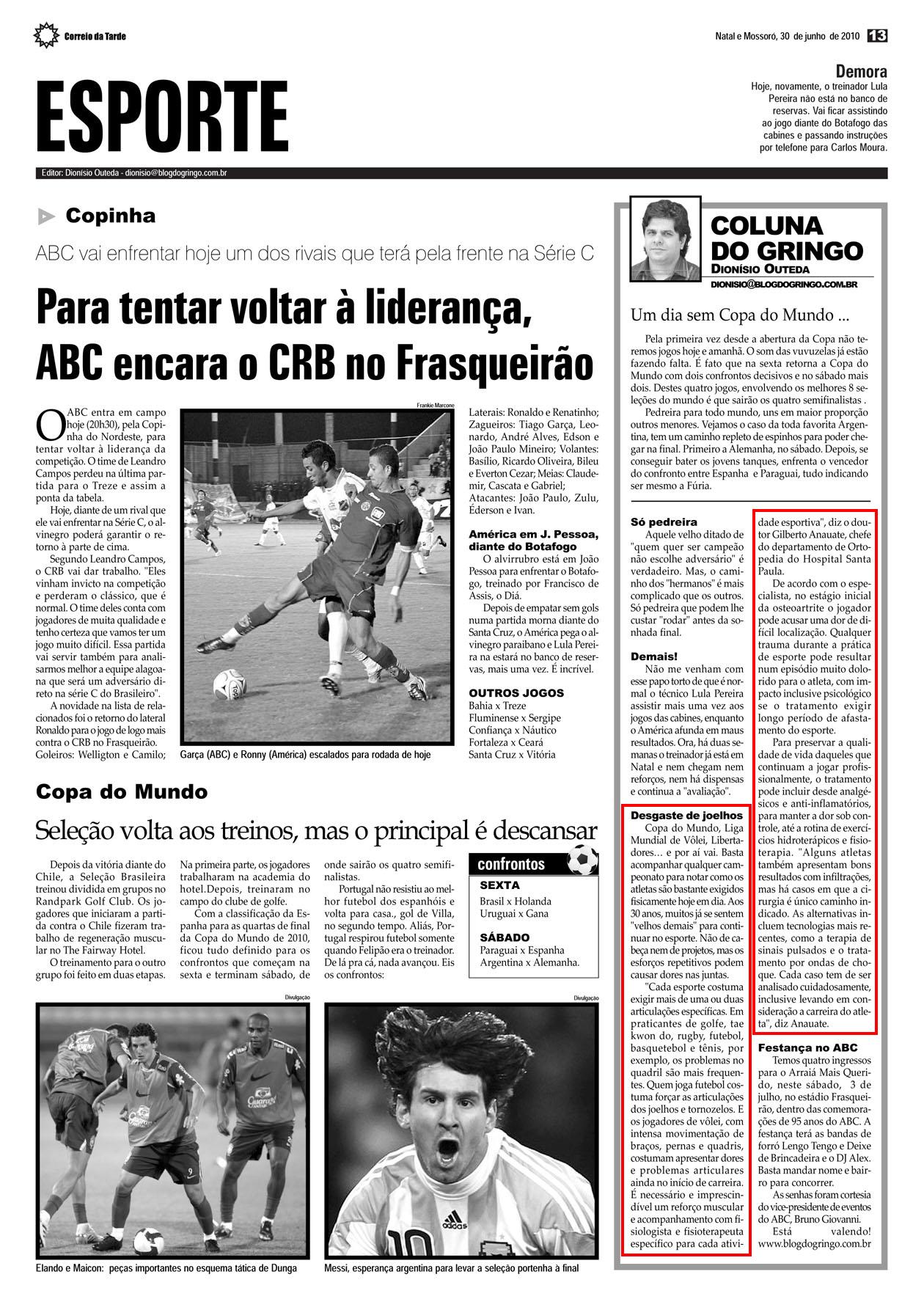 CORREIO DA TARDE (IMPRESSO/RN) - Desgaste de joelhos