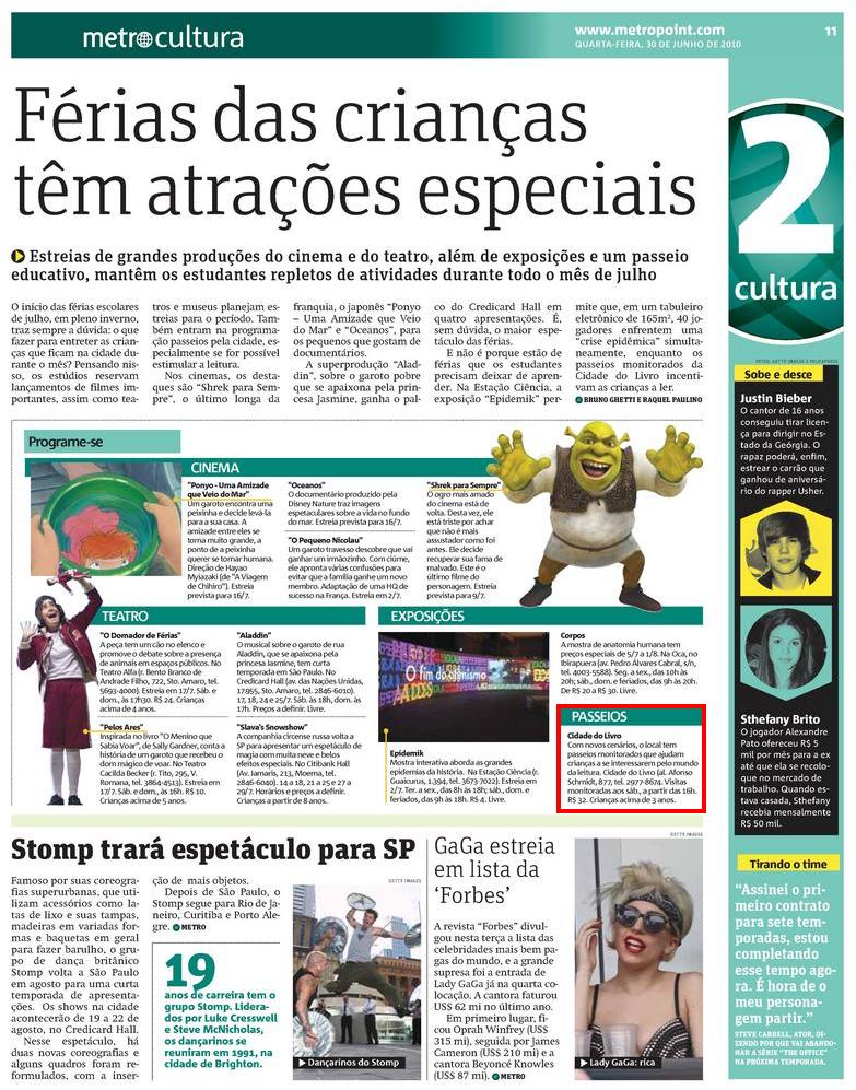 JORNAL METRO (IMPRESSO) - Passeios: cidade do livro