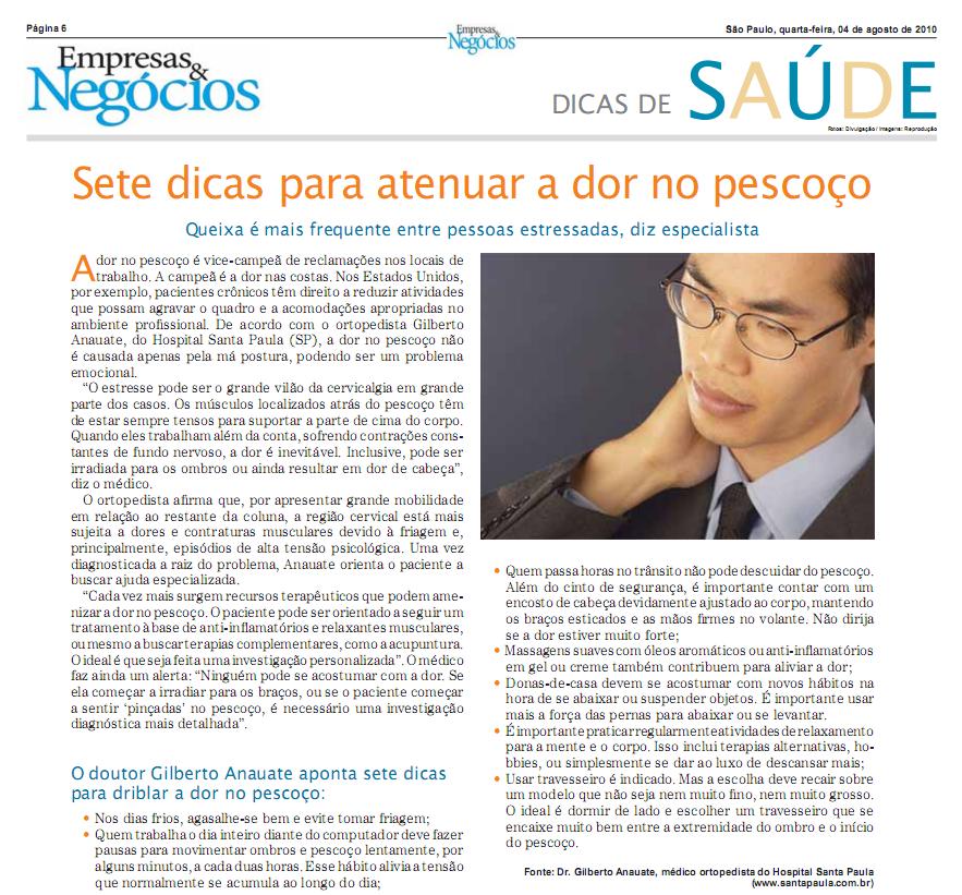 JORNAL EMPRESAS & NEGÓCIOS (IMPRESSO) - Sete dicas para atenuar a dor no pescoço