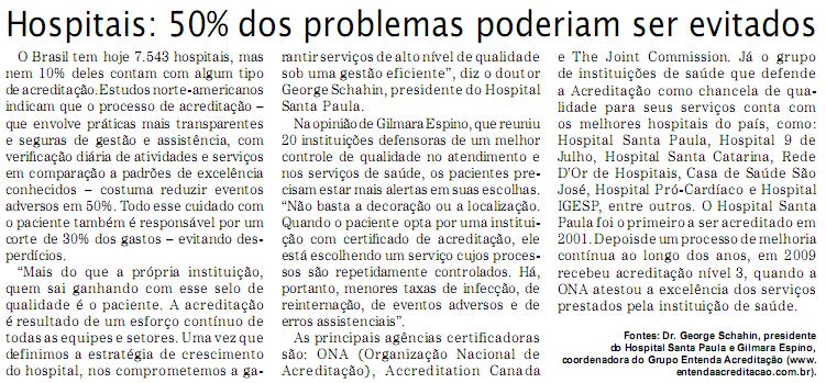 Clipping JORNAL EMPRESAS & NEGÓCIOS (IMPRESSO) - Hospitais: 50% dos problemas poderiam ser evitados 18/08/2010