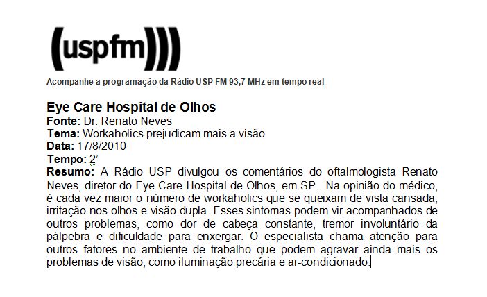 RÁDIO USP FM (97,3) - Workaholics prejudicam mais a visão