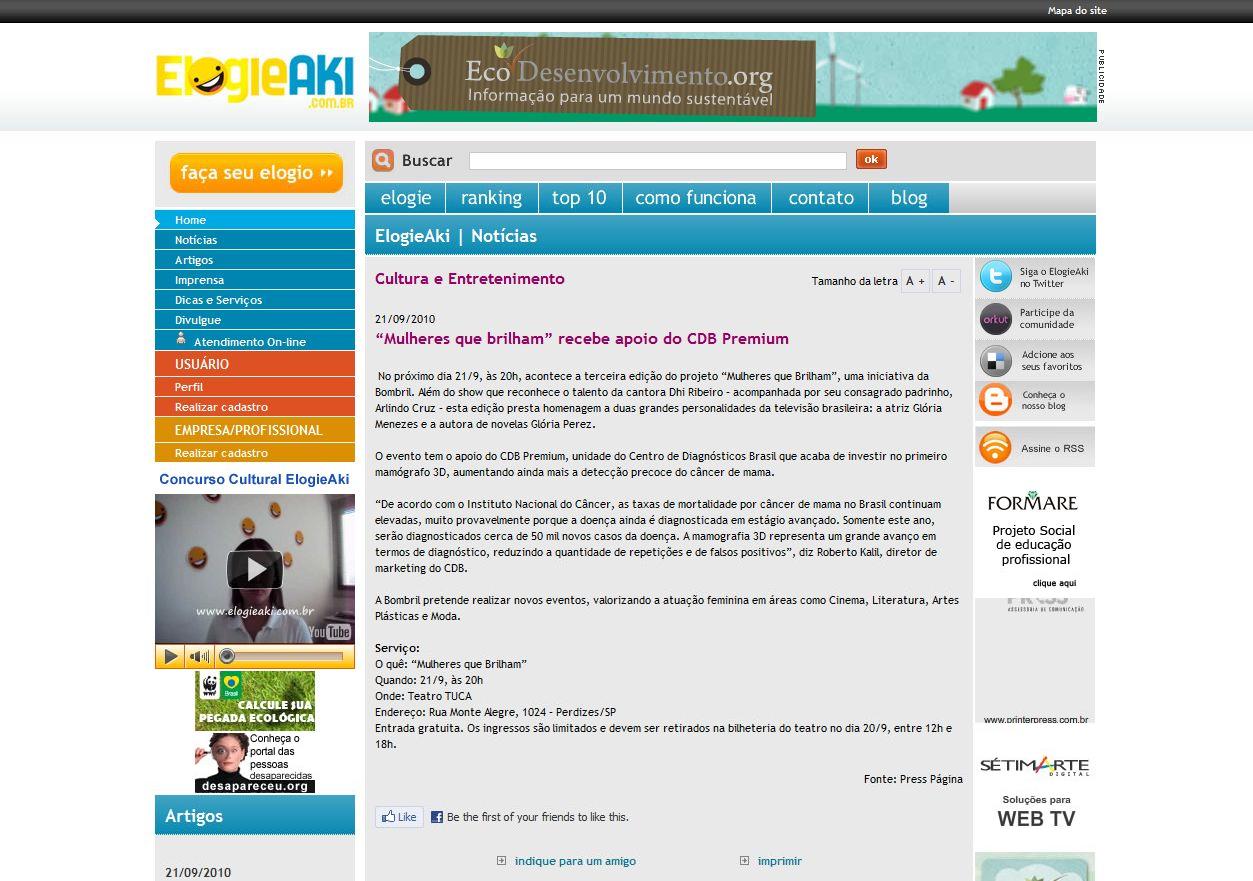 ELOGIEAKI (NEWS) - 'Mulheres que brilham' recebe apoio do CDB premium