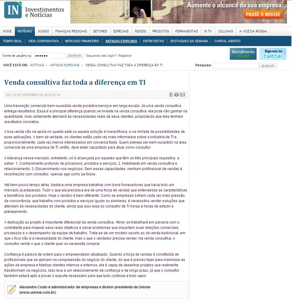INVESTIMENTOS & NOTÍCIAS (NEWS) - Venda consultiva faz toda a diferença em TI